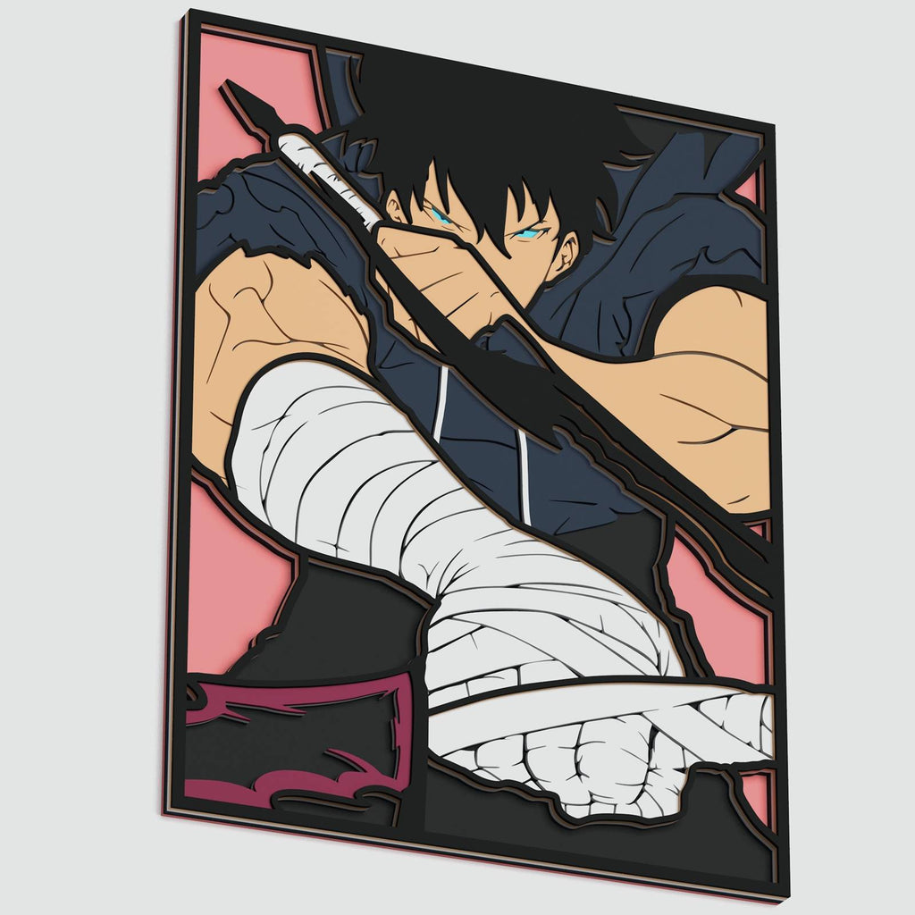 This is a vector design of Sung Jin-Woo (from anime "Solo Leveling"). Layered Design for laser cutting (Glowforge, etc.), paper cutting machines (Cricut, Cameo, etc.) and other cutting machines.