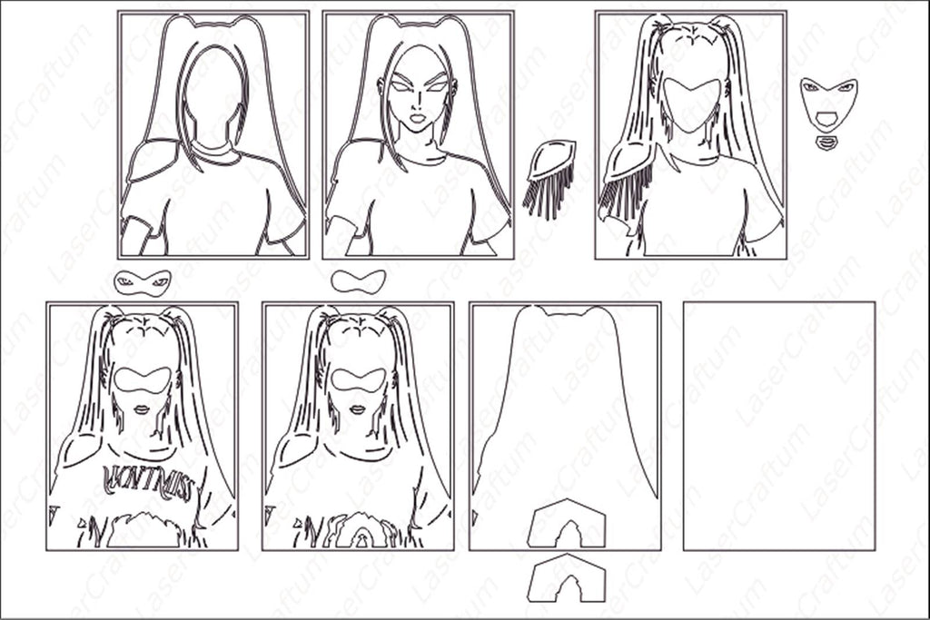 This is a vector design of Mira (K-Pop Demon Hunters). Layered Design for laser cutting (Glowforge, etc.), paper cutting machines (Cricut, Cameo, etc.) and other cutting machines.