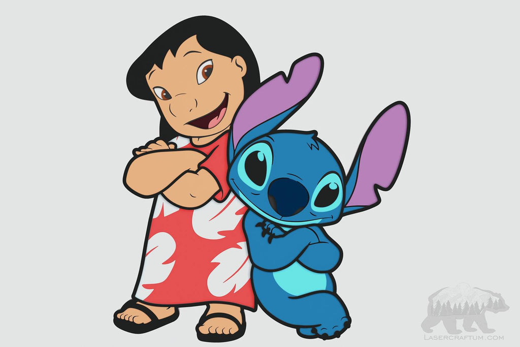 This is a vector model of Lilo and Stitch. Layered design for laser cutting (Glowforge, etc.), paper cutting machines (Cricut, Cameo, etc.) and other cutting machines.