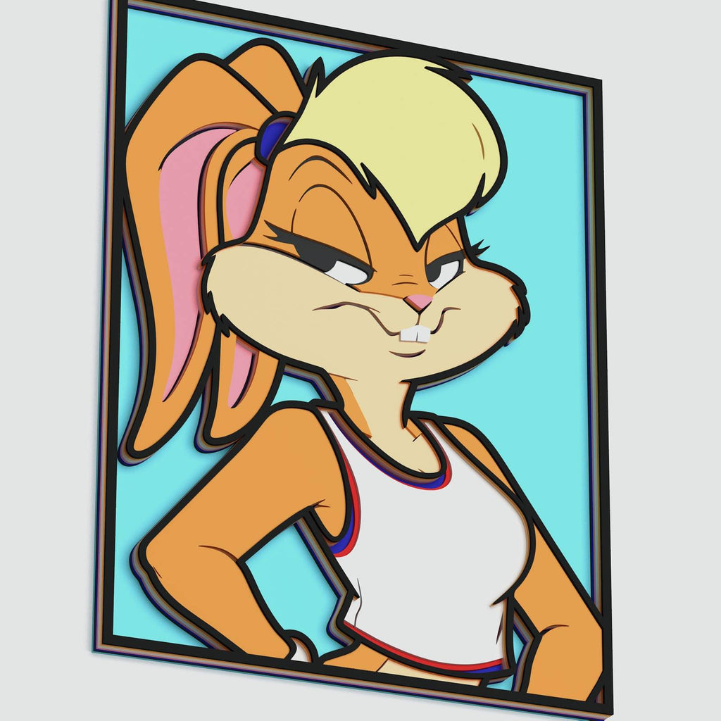 This is a vector model of Lola Bunny. Layered design for laser cutting (Glowforge, etc.), paper cutting machines (Cricut, Cameo, etc.) and other cutting machines.